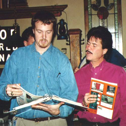 Rich Byrnes shares his extensive collection of homebrew catalogs with Jim Rice. |